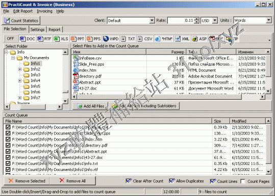 WordPerfect, HTML和PDF文件進行批量文字統計。可以自定義字、行、頁和字元統計選項功