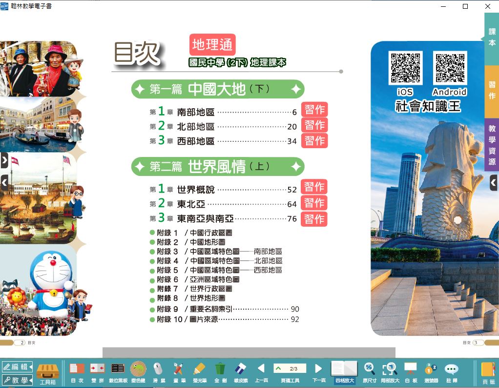 版 地理電子書 3年級(含課本、習作含解答)教學光碟DVD版