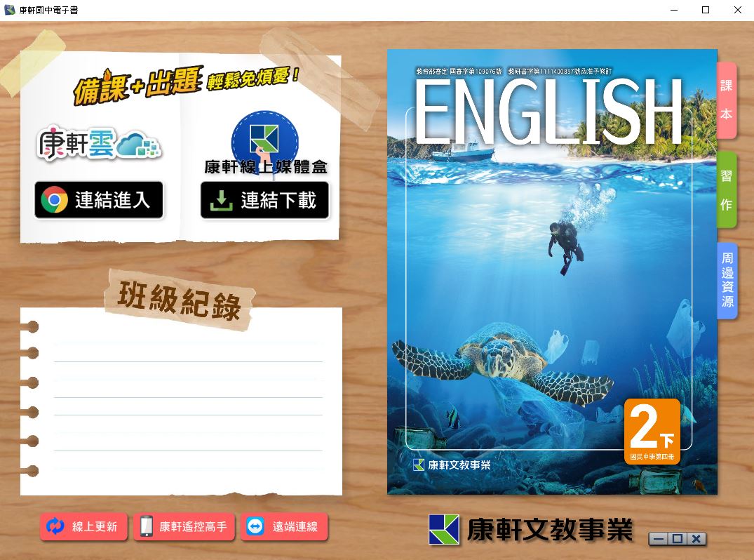 111學年下學期 國中 康軒版 英語電子書 2年級(含課本、習作含解答、教學資源)教學光碟