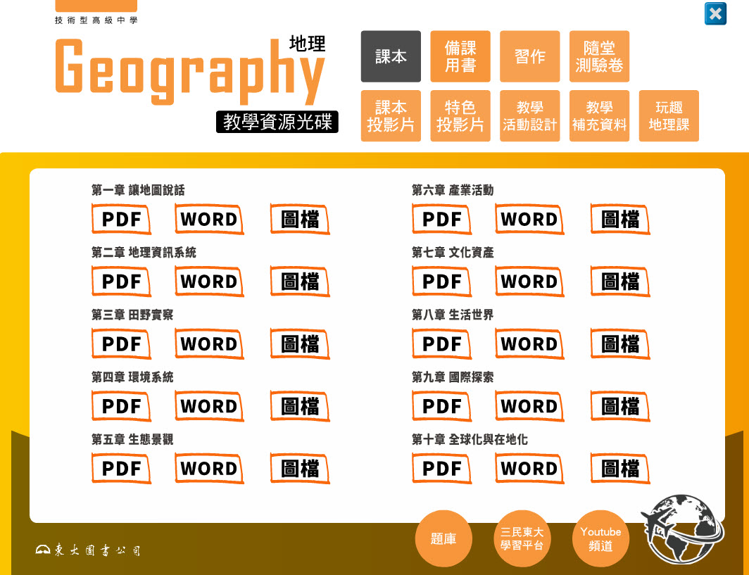 112學年 技術高中命題光碟、教學光碟 三民東大版 地理科(全) 題庫光碟、教學光碟