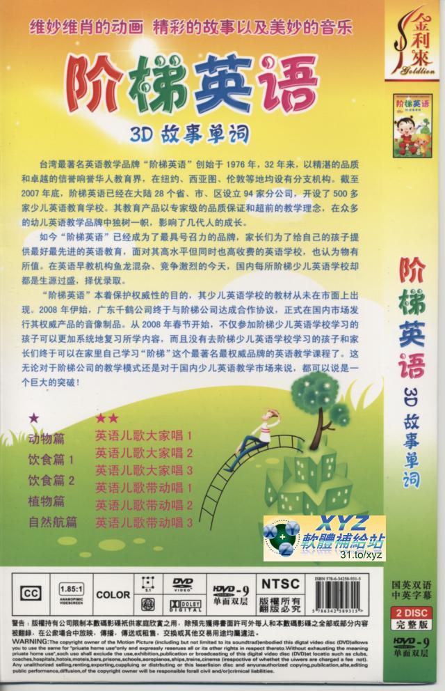 階梯英語 3D故事單詞 國語/英語交叉發音 80%繁體中文+20%簡體中文/英文交叉語言字幕版(影片帶動歡唱學習版)(2DVD)(幼教)(適用任何家用DVD播放機)