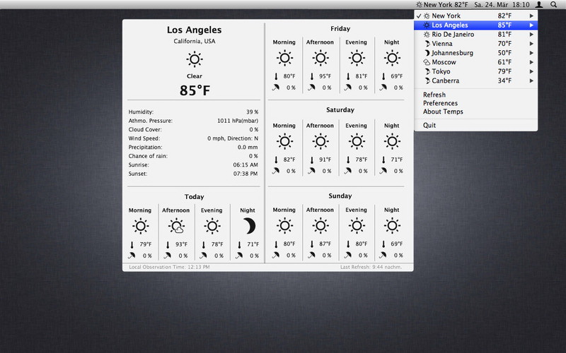 Temps v1.9.1 MacOSX 英文正式版(菜單欄氣象站和世界時鐘軟體)