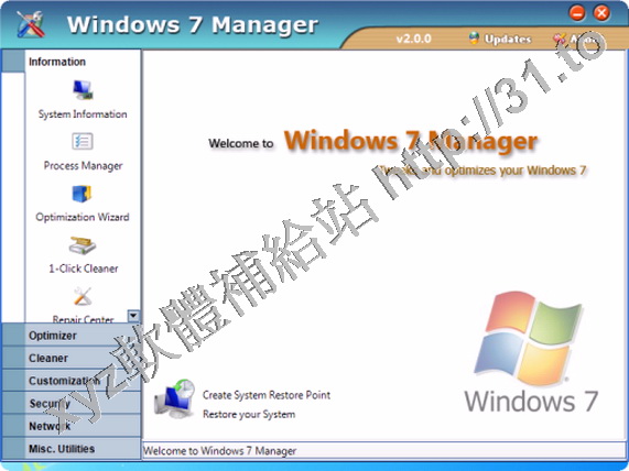 Yamicsoft Windows 7 Manager v3.0.0 英文正式版(Widnows7 總管是優化和設置軟體)