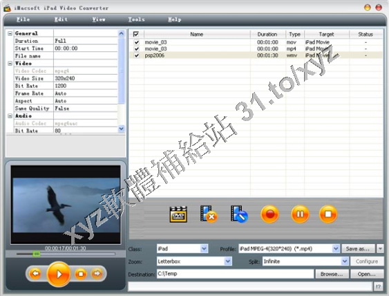 iMacsoft iPAD Video Converter 可以轉換任何格式到iPAD支援的 MPEG-4, H.264 格式,支援